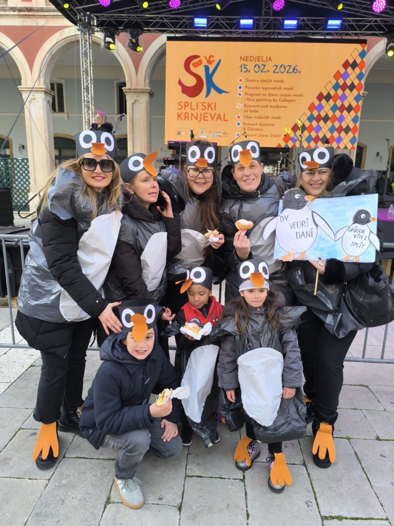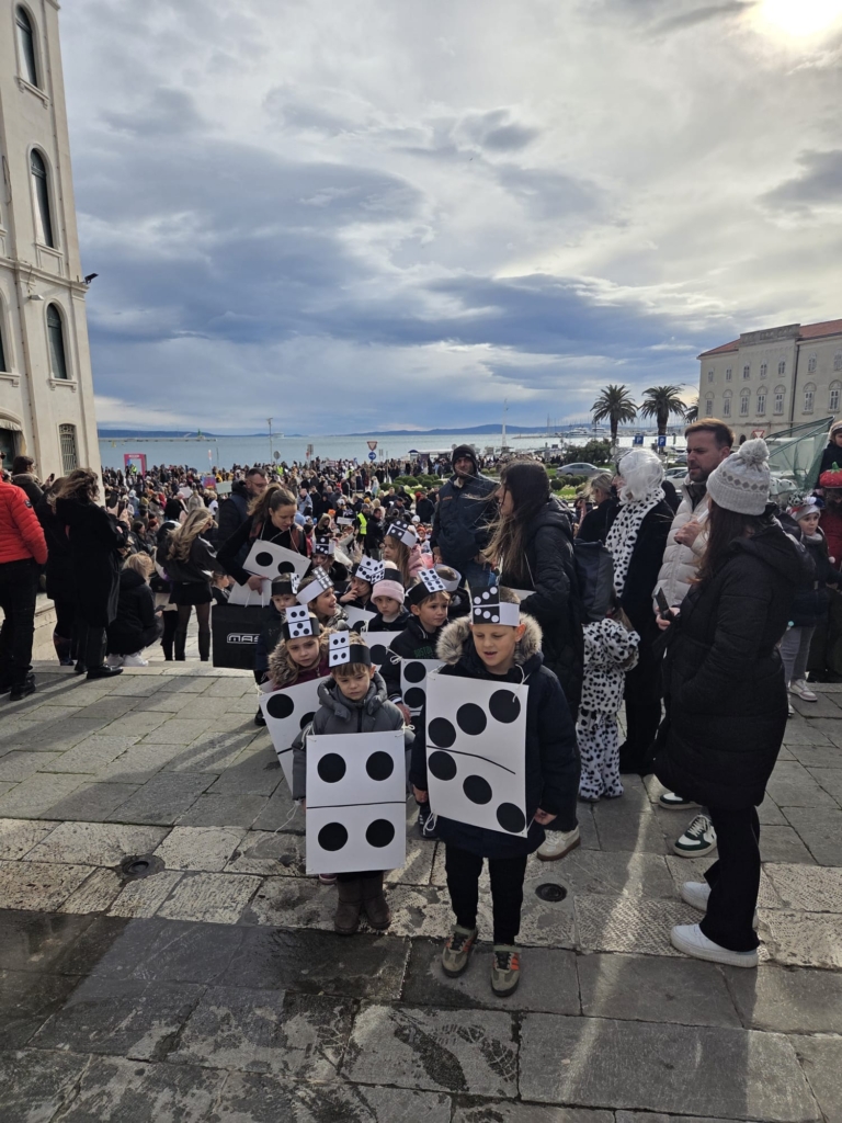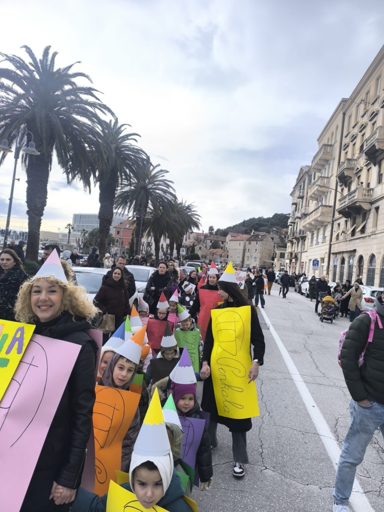 Program je započeo okupljanjem sudionika na Zapadnoj obali, nakon čega je uslijedila dječja smotra maski, u kojoj su sudjelovali mališani iz splitskih vrtića. Iz naše Ustanove sudjelovale su vrtićke skupine iz DV Adriana, DV Slavuj, DV Lavanda, DV Snjeguljica, DV Frulica, DV Sretni princ, DV Vedri dani i DV Zvončica.