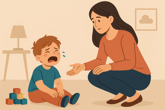 3. Malo riječi, puno razumijevanja: Nemojte objašnjavati ili pregovarati dok je dijete uzrujano. Kratko imenujte emociju: “Vidim da si jako ljut jer želiš tu igračku”.